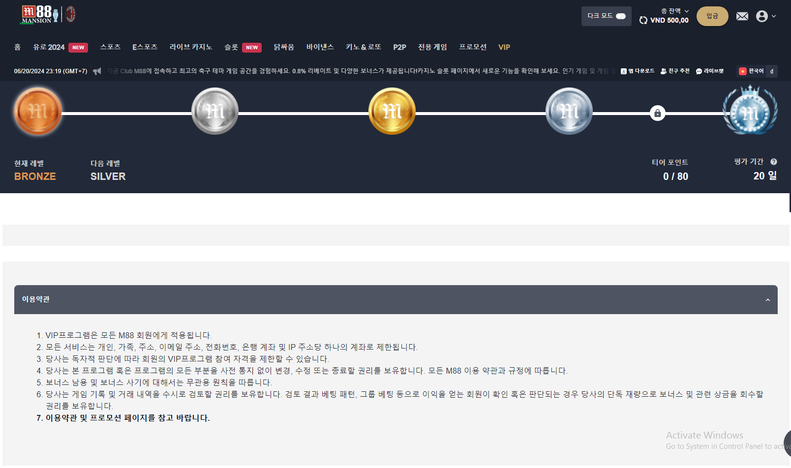 - 친한 고객: 총 베팅 금액이 688,000원 이상일 경우 0.3% 환급.