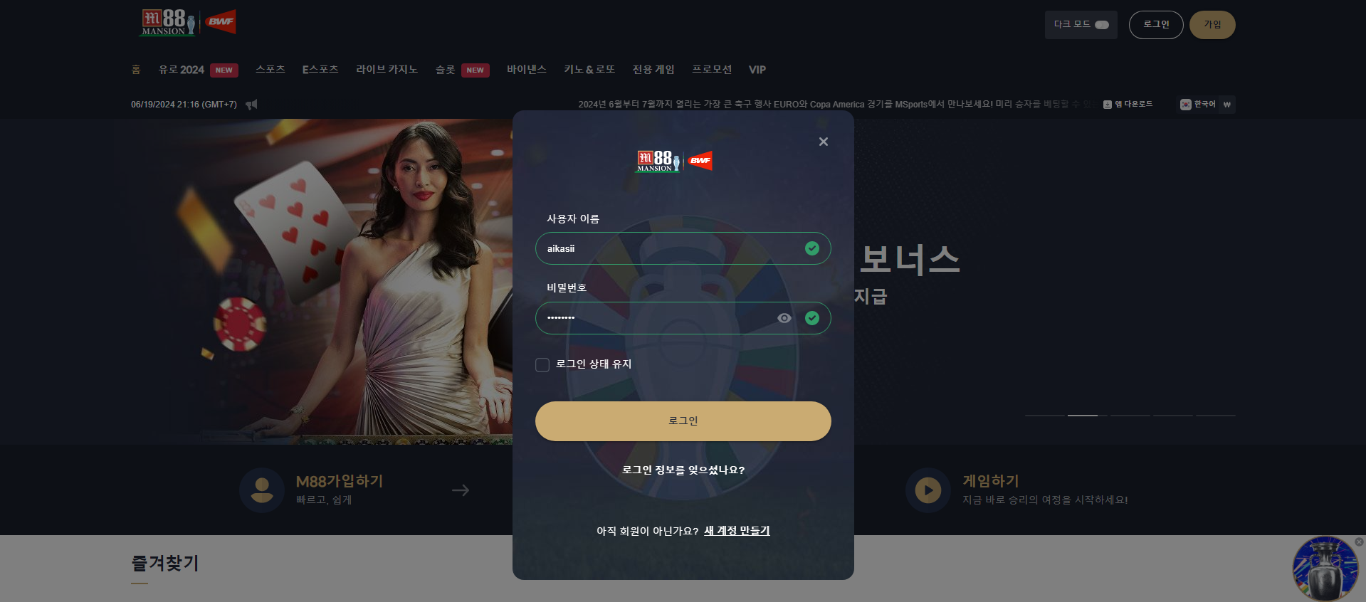답변: 현재 우리는 은행, 이메일, 페이스북, 자로, 텔레그램 등 많은 비밀번호를 기억해야 하기 때문에 로그인 이름이나 비밈번호를 잊어버리는 일이 잦습니다. 하지만 걱정하지 마세요, M88은 계정을 매우 빠르게 회복할 수 있는 지원을 제공합니다. 이름이나 비밀번호를 기억하지 못할 경우, “로그인 ➞ 비밀번호 잊음 ➞ 비밀번호/사용자 이름 잊음 선택 ➞ 등록된 이메일 주소 입력 ➞ 확인”을 클릭하세요. 그러면 M88이 새 비밀번호를 등록하거나 사용자 이름 정보를 이메일로 보내고, 사용자가 다시 입력하도록 요청할 것입니다.