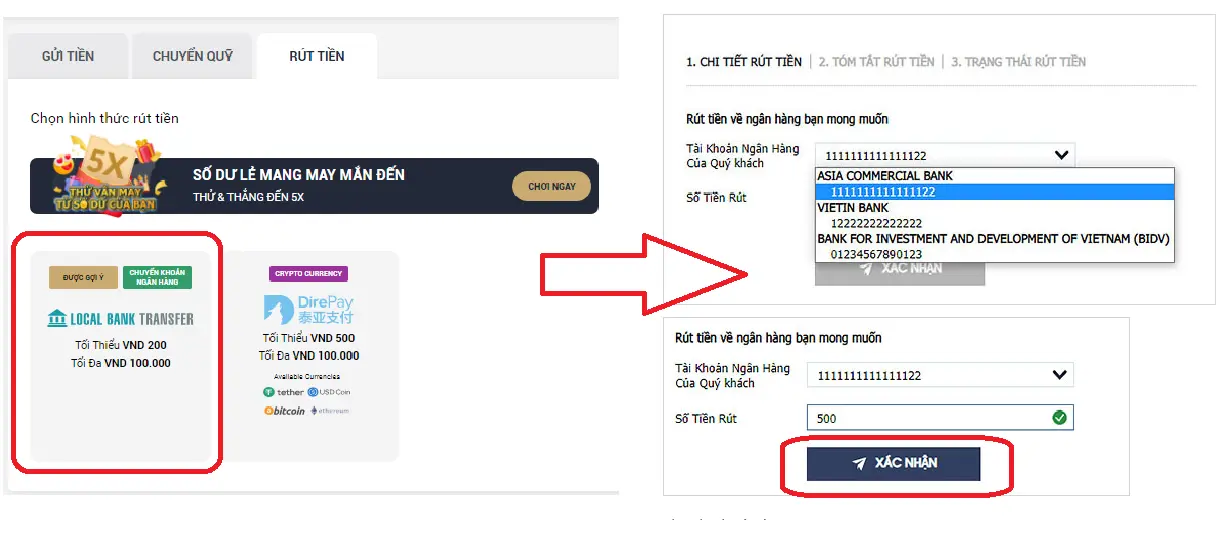 Có hai cách thức rút tiền online mà người chơi sử dụng: Wealthpay và Direpay. Cả hai phương thức này đều có cách thực hiện giống nhau. Bạn chỉ cần làm theo hướng dẫn sau:
